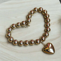 This stunning beaded heart necklace features a gold-filled pendant made from high-quality plastic. The big ball beaded design adds a touch of elegance and charm. Perfect for adding a pop of color and style to any outfit. Handcrafted with care for a truly unique look.