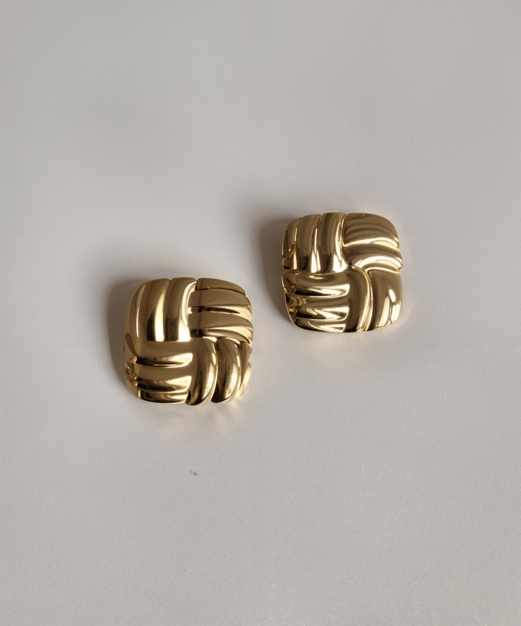 Classic meets contemporary with our Golden Weave Studs. The smooth, quilted texture and polished gold finish make these earrings a timeless staple — elegant, versatile, and radiating quiet confidence.
